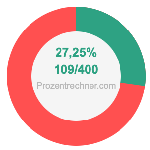 Die folgende Abbildung zeigt 27,25 Prozent und 27,25 als Bruch in einem Kreisdiagramm. Wie Sie jetzt wissen, sind 27,25% dasselbe wie 109/400.