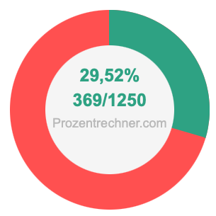 Die folgende Abbildung zeigt 29,52 Prozent und 29,52 als Bruch in einem Kreisdiagramm. Wie Sie jetzt wissen, sind 29,52% dasselbe wie 369/1250.