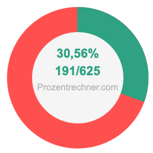 Die folgende Abbildung zeigt 30,56 Prozent und 30,56 als Bruch in einem Kreisdiagramm. Wie Sie jetzt wissen, sind 30,56% dasselbe wie 191/625.