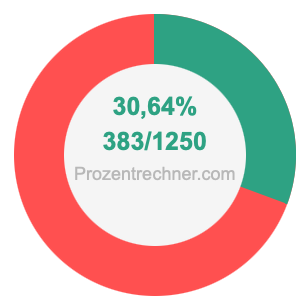 Die folgende Abbildung zeigt 30,64 Prozent und 30,64 als Bruch in einem Kreisdiagramm. Wie Sie jetzt wissen, sind 30,64% dasselbe wie 383/1250.
