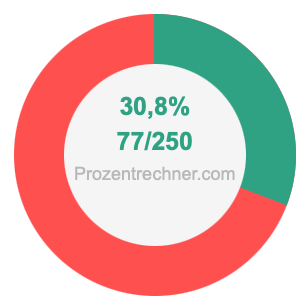 Die folgende Abbildung zeigt 30,8 Prozent und 30,8 als Bruch in einem Kreisdiagramm. Wie Sie jetzt wissen, sind 30,8% dasselbe wie 77/250.