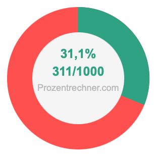 Die folgende Abbildung zeigt 31,1 Prozent und 31,1 als Bruch in einem Kreisdiagramm. Wie Sie jetzt wissen, sind 31,1% dasselbe wie 311/1000.