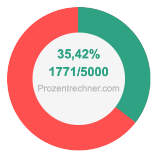 Die folgende Abbildung zeigt 35,42 Prozent und 35,42 als Bruch in einem Kreisdiagramm. Wie Sie jetzt wissen, sind 35,42% dasselbe wie 1771/5000.