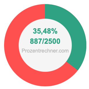 Die folgende Abbildung zeigt 35,48 Prozent und 35,48 als Bruch in einem Kreisdiagramm. Wie Sie jetzt wissen, sind 35,48% dasselbe wie 887/2500.