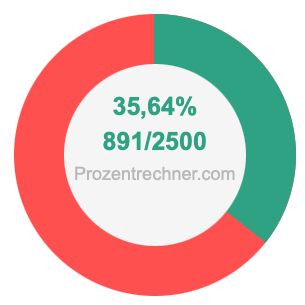 Die folgende Abbildung zeigt 35,64 Prozent und 35,64 als Bruch in einem Kreisdiagramm. Wie Sie jetzt wissen, sind 35,64% dasselbe wie 891/2500.