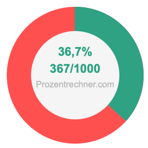 Die folgende Abbildung zeigt 36,7 Prozent und 36,7 als Bruch in einem Kreisdiagramm. Wie Sie jetzt wissen, sind 36,7% dasselbe wie 367/1000.