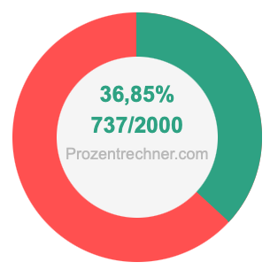 Die folgende Abbildung zeigt 36,85 Prozent und 36,85 als Bruch in einem Kreisdiagramm. Wie Sie jetzt wissen, sind 36,85% dasselbe wie 737/2000.
