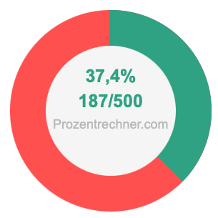 Die folgende Abbildung zeigt 37,4 Prozent und 37,4 als Bruch in einem Kreisdiagramm. Wie Sie jetzt wissen, sind 37,4% dasselbe wie 187/500.
