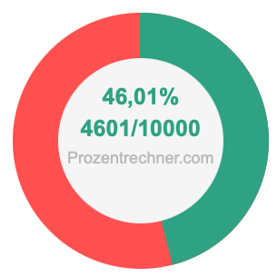 Die folgende Abbildung zeigt 46,01 Prozent und 46,01 als Bruch in einem Kreisdiagramm. Wie Sie jetzt wissen, sind 46,01% dasselbe wie 4601/10000.