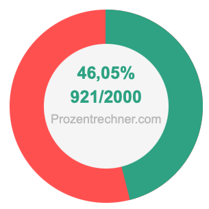 Die folgende Abbildung zeigt 46,05 Prozent und 46,05 als Bruch in einem Kreisdiagramm. Wie Sie jetzt wissen, sind 46,05% dasselbe wie 921/2000.