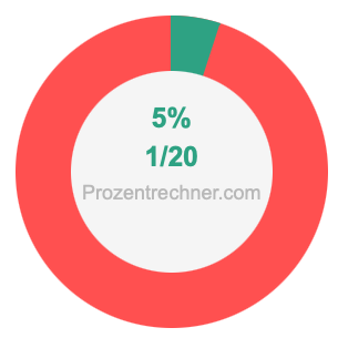 Die folgende Abbildung zeigt 5 Prozent und 5 als Bruch in einem Kreisdiagramm. Wie Sie jetzt wissen, sind 5% dasselbe wie 1/20.
