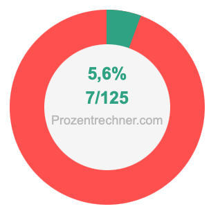 Die folgende Abbildung zeigt 5,6 Prozent und 5,6 als Bruch in einem Kreisdiagramm. Wie Sie jetzt wissen, sind 5,6% dasselbe wie 7/125.