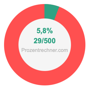 Die folgende Abbildung zeigt 5,8 Prozent und 5,8 als Bruch in einem Kreisdiagramm. Wie Sie jetzt wissen, sind 5,8% dasselbe wie 29/500.