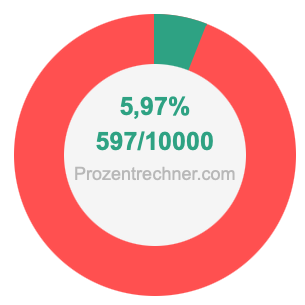Die folgende Abbildung zeigt 5,97 Prozent und 5,97 als Bruch in einem Kreisdiagramm. Wie Sie jetzt wissen, sind 5,97% dasselbe wie 597/10000.