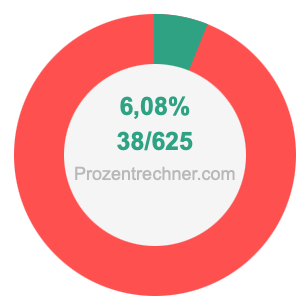 Die folgende Abbildung zeigt 6,08 Prozent und 6,08 als Bruch in einem Kreisdiagramm. Wie Sie jetzt wissen, sind 6,08% dasselbe wie 38/625.