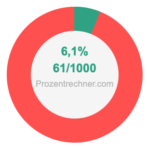 Die folgende Abbildung zeigt 6,1 Prozent und 6,1 als Bruch in einem Kreisdiagramm. Wie Sie jetzt wissen, sind 6,1% dasselbe wie 61/1000.