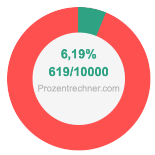 Die folgende Abbildung zeigt 6,19 Prozent und 6,19 als Bruch in einem Kreisdiagramm. Wie Sie jetzt wissen, sind 6,19% dasselbe wie 619/10000.