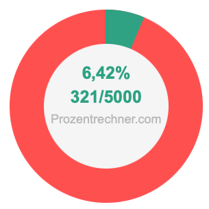Die folgende Abbildung zeigt 6,42 Prozent und 6,42 als Bruch in einem Kreisdiagramm. Wie Sie jetzt wissen, sind 6,42% dasselbe wie 321/5000.