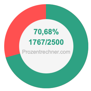 Die folgende Abbildung zeigt 70,68 Prozent und 70,68 als Bruch in einem Kreisdiagramm. Wie Sie jetzt wissen, sind 70,68% dasselbe wie 1767/2500.
