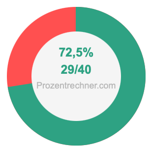Die folgende Abbildung zeigt 72,5 Prozent und 72,5 als Bruch in einem Kreisdiagramm. Wie Sie jetzt wissen, sind 72,5% dasselbe wie 29/40.